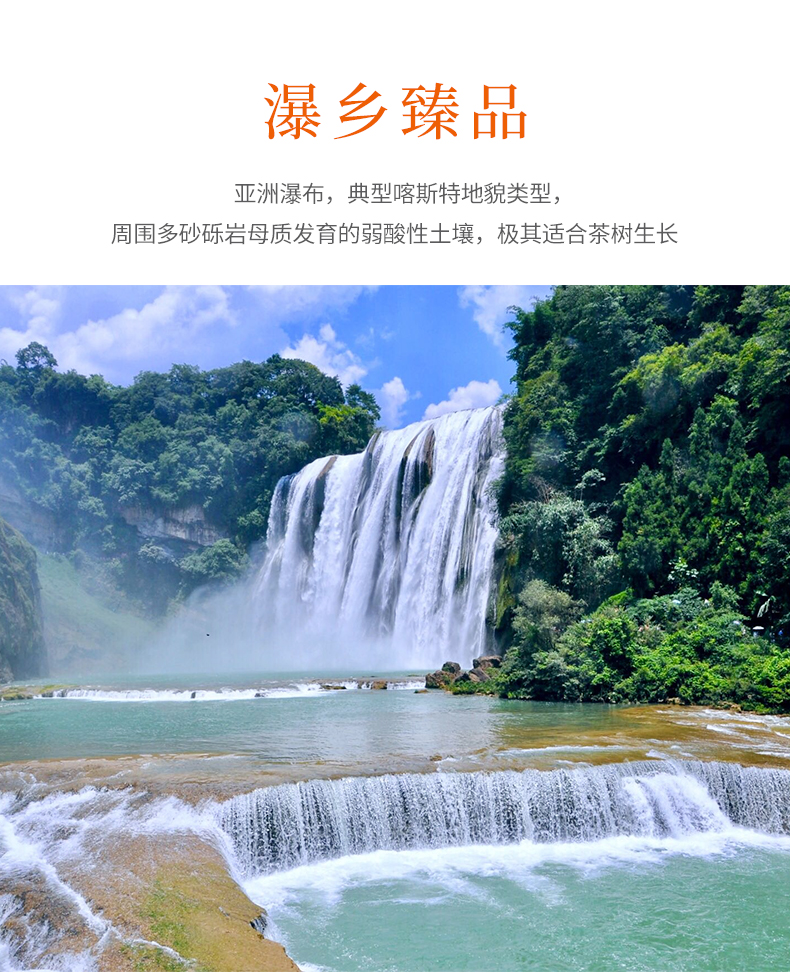 瀑布茶品牌是安順市人民政府主打茶葉品牌,省級重點打造區(qū)域公共品牌,屬貴州五大名茶,先后獲得獲“中國農(nóng)產(chǎn)品區(qū)域公用品牌”、“貴州省著名商標”、“貴州省名牌產(chǎn)品”等榮譽稱號。近年來,在各級部門大力推動下,瀑布茶品牌不斷發(fā)展壯大。截止目前,現(xiàn)有瀑布茶品牌加盟企業(yè)23家,輻射茶園面積200000余畝,其中綠色食品認證茶園基地面積7000余畝,有機食品認證基地面積2500畝。擁有“瀑布毛峰”、“瀑布翠芽”、“瀑布紅茶”、“瀑布翠龍”等產(chǎn)品,多次獲得“中綠杯”、“中茶杯”、“華茗杯”等大獎;分別榮獲第14屆中國國際農(nóng)產(chǎn)品交易會金獎、第18屆中國綠色食品博覽會金獎、“黃山杯”首屆全國傳統(tǒng)名茶產(chǎn)品質(zhì)量特別金獎、安順十大旅游商品等殊榮及稱號。