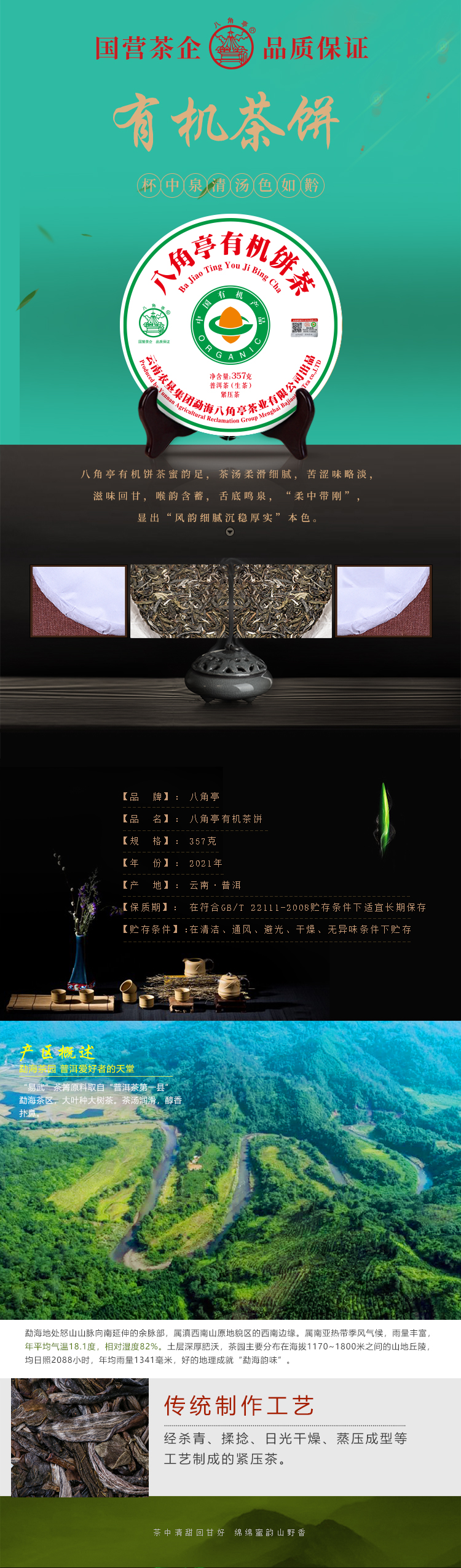 云南農墾集團勐海八角亭茶業有限公司(簡稱八角亭茶業,原黎明茶廠),坐落于普洱茶核心產區云南省西雙版納傣族自治州勐海縣勐遮鎮,隸屬于云南省農墾集團有限公司。