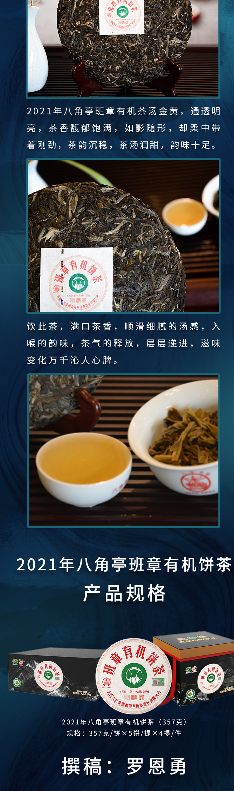 ??——八角亭茶業(yè)公司:經(jīng)營方式為生產(chǎn)加工、銷售,主營普洱茶、緊壓茶、兼營毛茶收購。目前以生產(chǎn)、加工、銷售“八角亭”系列普洱茶為主,是云南省農(nóng)業(yè)產(chǎn)業(yè)化龍頭企業(yè)。“八角亭”商標(biāo)獲得云南省著名商標(biāo),“八角亭”牌普洱茶榮獲云南省名牌產(chǎn)品和云南省名牌農(nóng)產(chǎn)品。已先后通過工業(yè)生產(chǎn)許可證、ISQ9001與HCCP認(rèn)證、云茶牌認(rèn)證(YC)等項工作,在歷次專業(yè)評比中“八角亭”普洱茶多次獲得特等金獎和金獎。2017年5月,“八角亭”牌老班章茶葉獲得了有機茶資格認(rèn)證。八角亭茶業(yè)公司多次進(jìn)行了技術(shù)改造,現(xiàn)已建立了標(biāo)準(zhǔn)化生產(chǎn)車間和設(shè)備,年設(shè)計生產(chǎn)量達(dá)3000噸,是整個公司的主體核心企業(yè)。