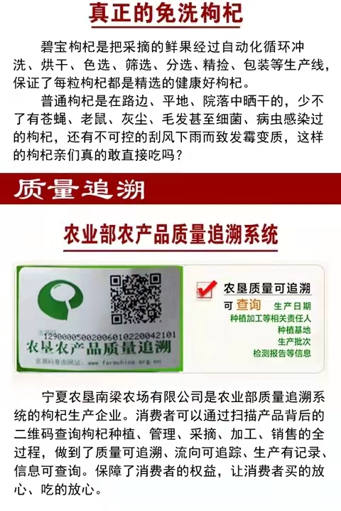 公司枸杞基地先后被國家、“全國農(nóng)業(yè)標準化示范基地”,“自治區(qū)農(nóng)業(yè)產(chǎn)業(yè)化重點龍頭企業(yè)”等稱號。是農(nóng)業(yè)部質量追溯產(chǎn)品,并獲得中國農(nóng)墾首批落地背書企業(yè),產(chǎn)品通過了綠色食品認證、ISO9001質量管理體系認證,HACCP(危害分析與關鍵控制點)管理體系認證和GAP中國良好農(nóng)業(yè)規(guī)范認證。公司主要產(chǎn)品為“碧寶牌” “南梁”牌枸杞。主導產(chǎn)品“碧寶牌” 多次獲得中國農(nóng)業(yè)博覽會金獎、馬來西亞國際金獎、兩屆中國專利新技術新產(chǎn)品博覽會金獎在內的多項國際國內金獎,并連續(xù)獲得第十四屆、十五屆、十六屆國際農(nóng)產(chǎn)品交易會金獎。